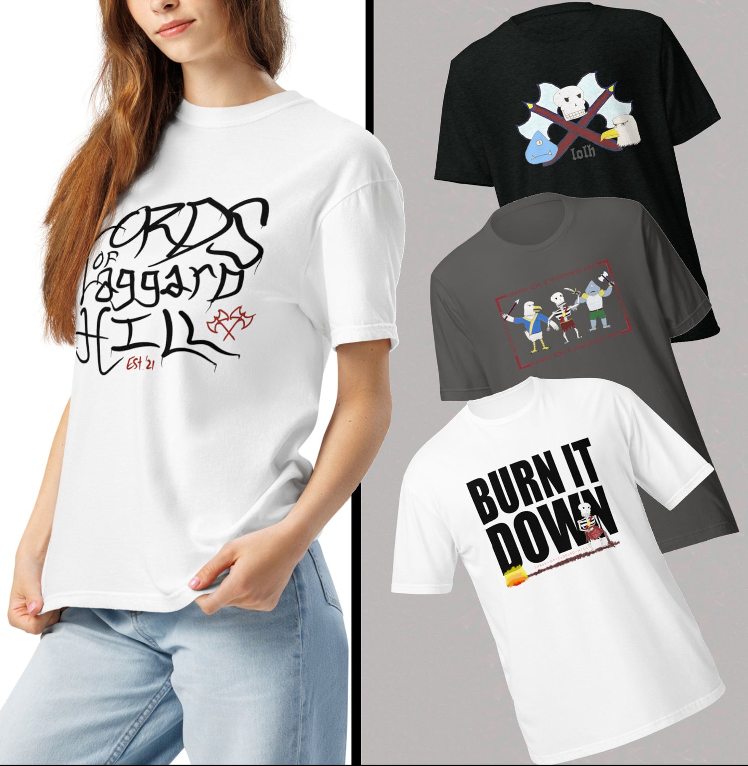 Lords of Laggard Hill merch is faster. Our apparel partner Printful delivers in 1 week on average (calculated at checkout).